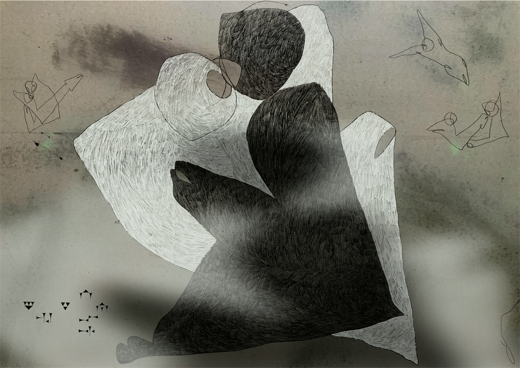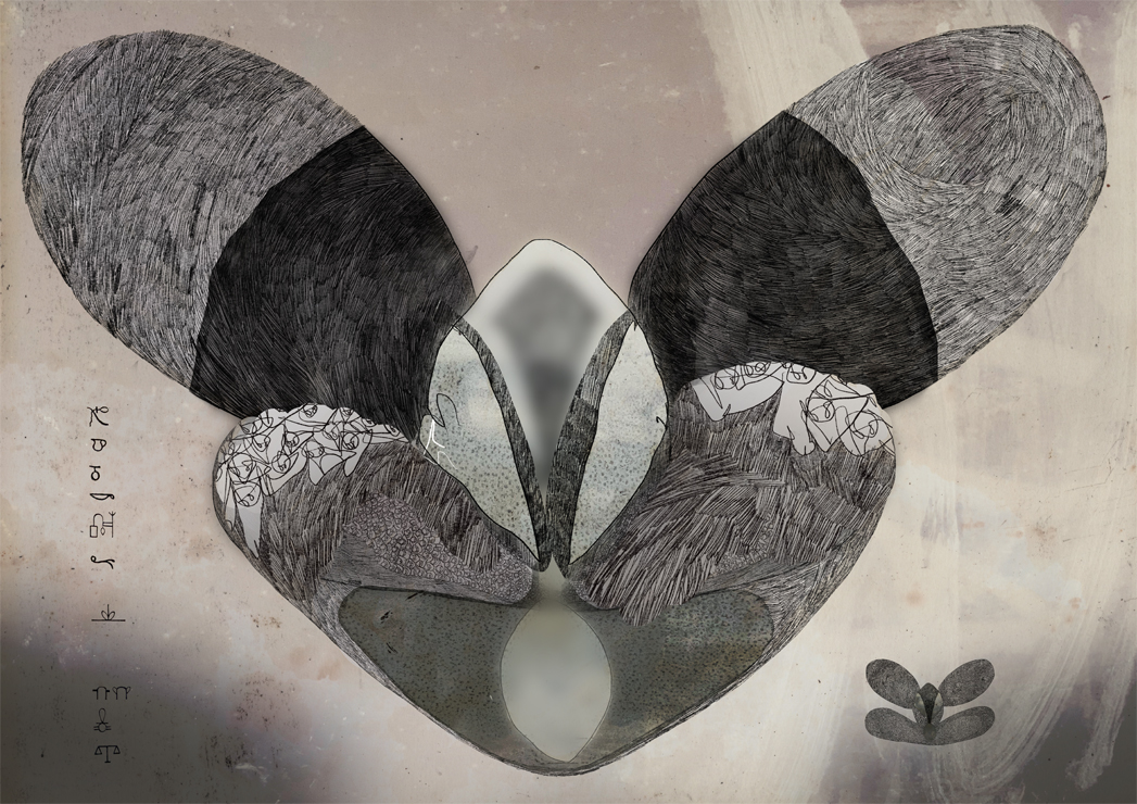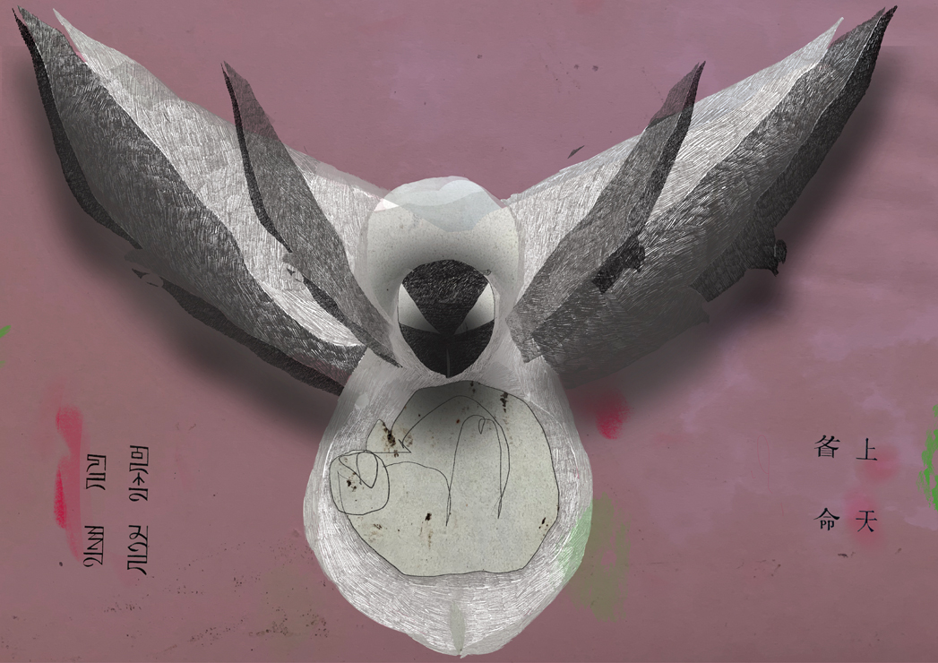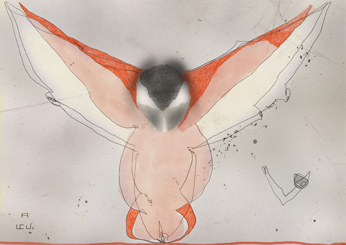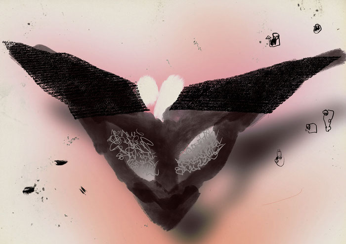 aus der Serie "knistern, fliegen, flüstern", 2019/2020, mixed media, Pigmentdruck 140 x 100 cm